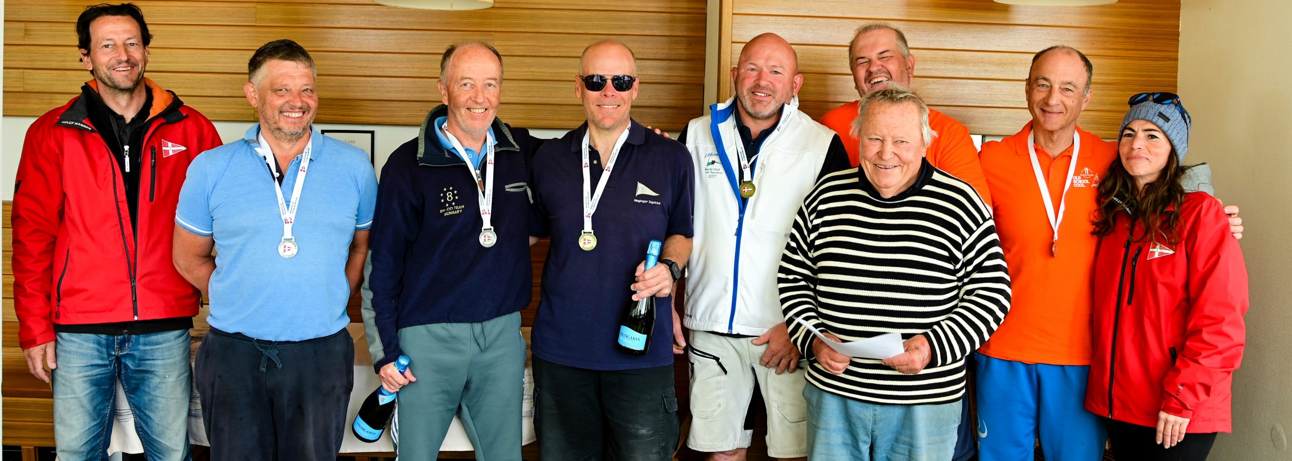 Zweiter Tag: Angesetzt waren vier Wettfahrten. Leider konnten nur zwei durchgeführt werden, da von der ersten auf die zweite Wettfahrt, das Feld einmal komplett um 180 gedreht werden musste . Auch die Windstärke variierte stark. Einige Kollegen mussten ihr Boot dreimal untrimmen, von mittleren Wind, auf leichten Wind und dann auf starken Wind, die schnelleren Boote brauchten nur zwei Trimmänderungen. Muharjarhar…