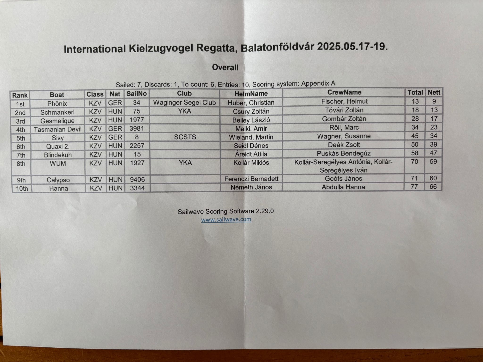 Die Regattaleitung hat die verschiedenen Klassen sehr souverän gemanaget und es gab am ersten Abend ein sehr gutes Gulasch für die Segler als Verpflegung. Am zweiten Abend gab es dann Pasta Party… und ein paar Mitbringsel Kappen und Poloshirts . Vielen Dank dafür! Abends wurde am See gechillt und dabei ein wenig auch gesungen… die Stars waren die Bavaria Balaton Nebelkrähen… Stichwort Marmor, Stein und Eisen bricht nur die Kieler nicht… das ist im Nachhinein nicht ganz wahr. Wir ja doch einiges an Bruch.